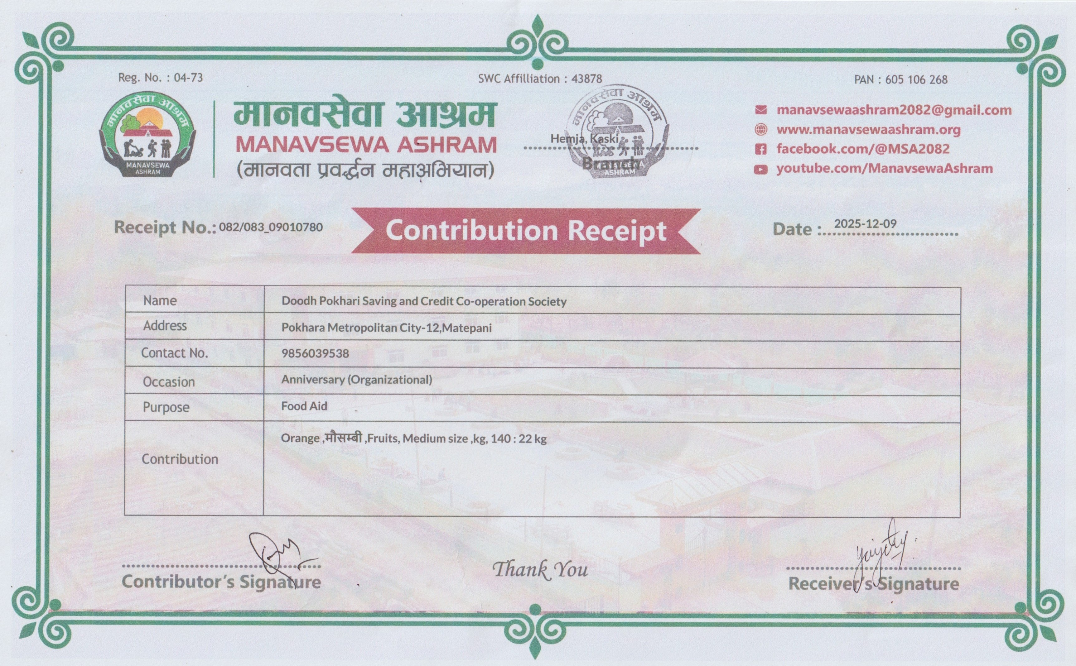 वृद्धाश्रमलाई सहयोग